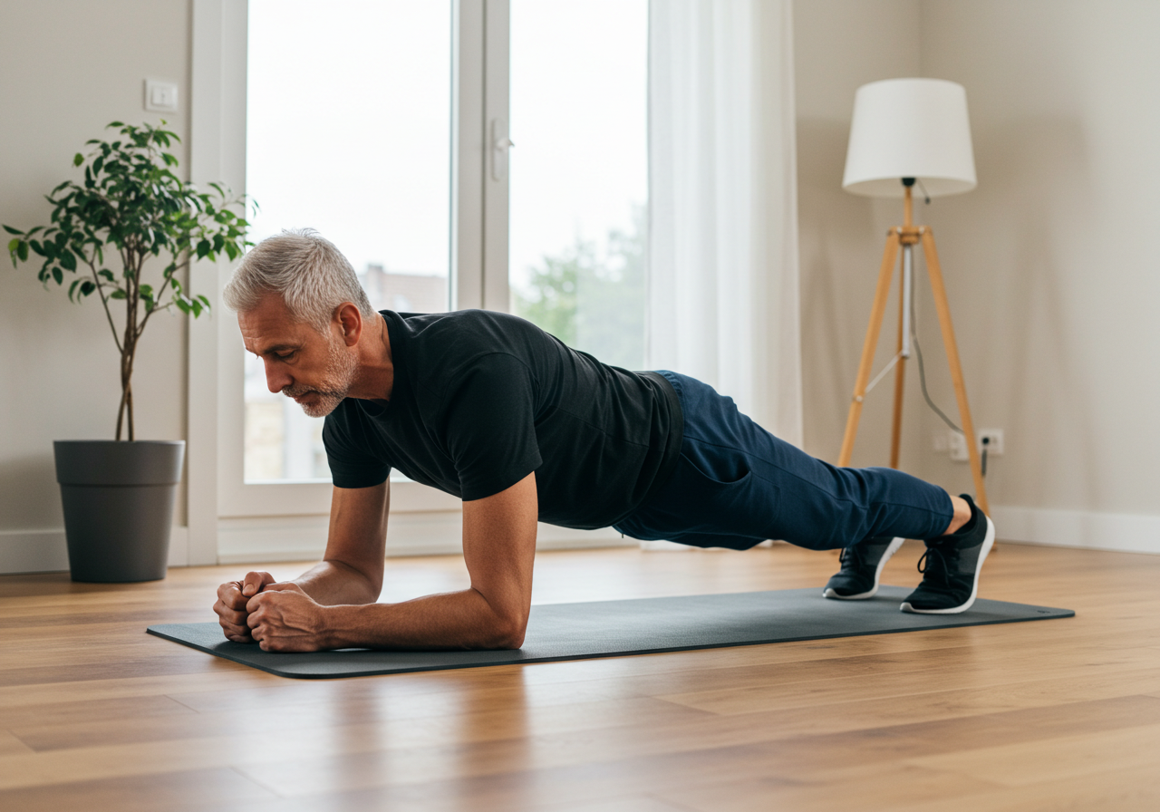 - 플랭크: 배와 허리 근육을 동시에 강화, 30초부터 시작해 점차 시간 늘리기