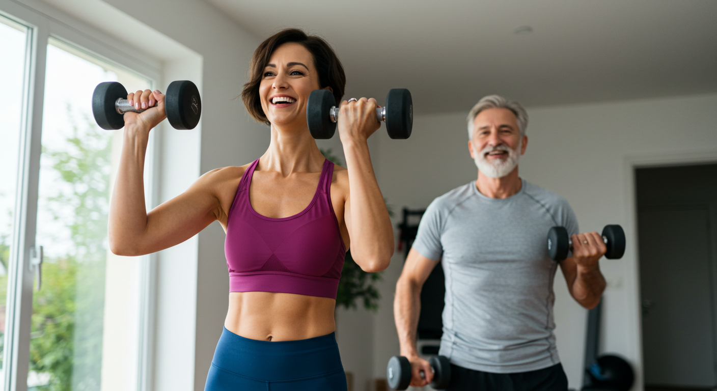 - 중년 여성: 여성은 폐경 이후 호르몬 변화로 인해 근육과 뼈의 밀도가 감소하므로, 가벼운 웨이트 + 고반복 중심의 근육 자극이 도움이 됩니다. 유산소 운동과 병행하면 더욱 효과적입니다.